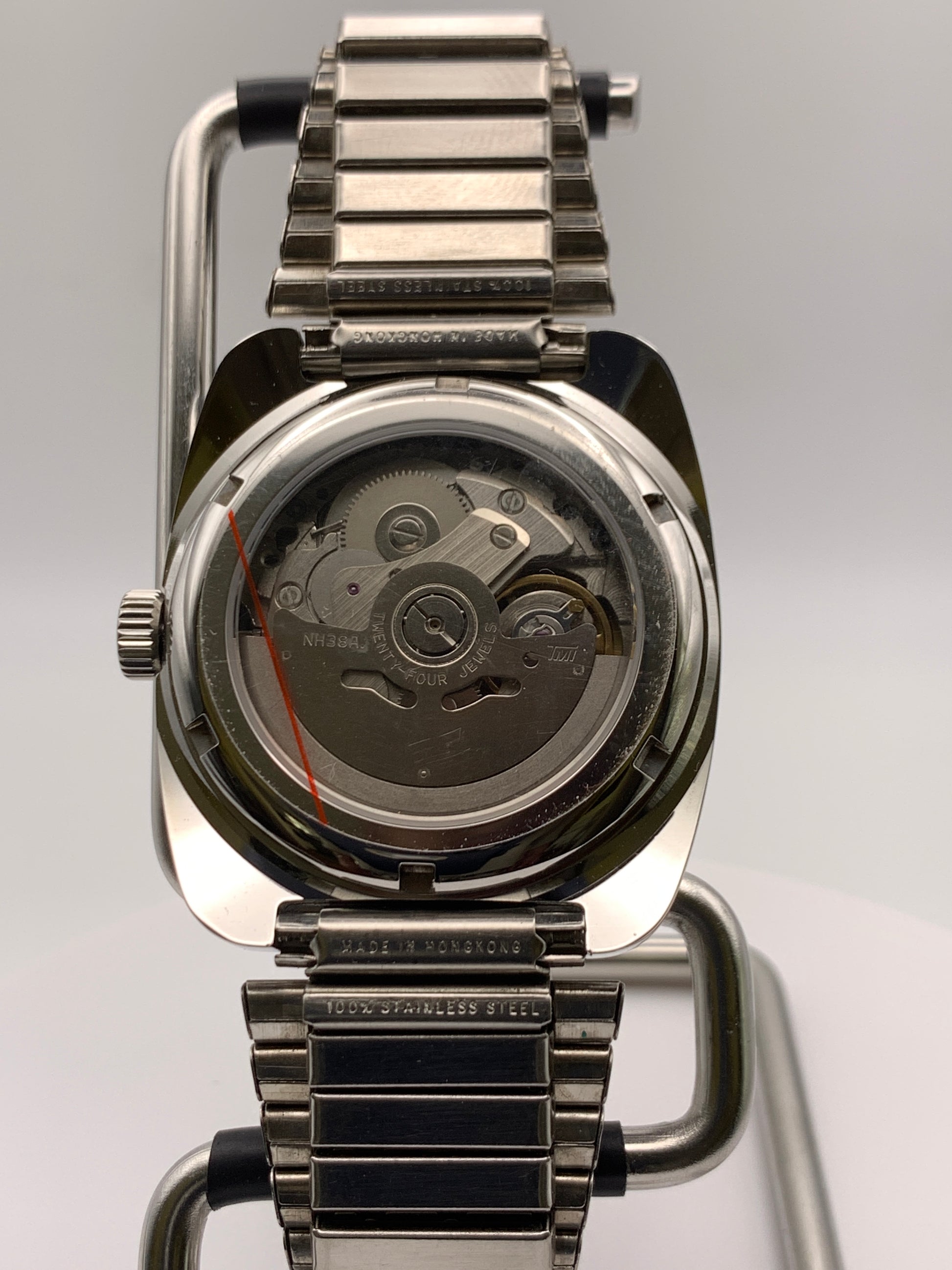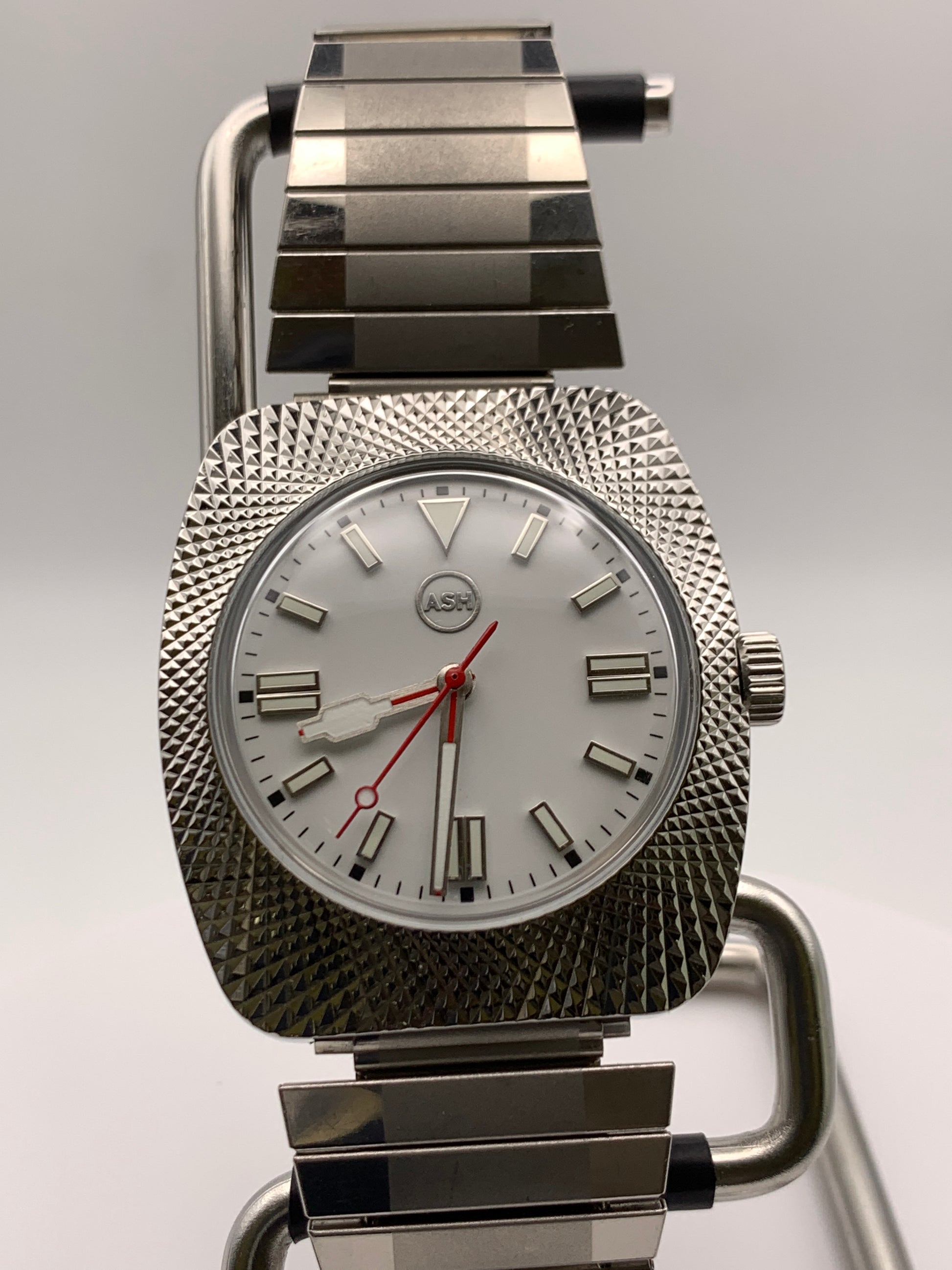 Aspects. 38mm faceted case. Vintage expanding bracelet. Acrylic dome crystal. NH38 automatic movement.