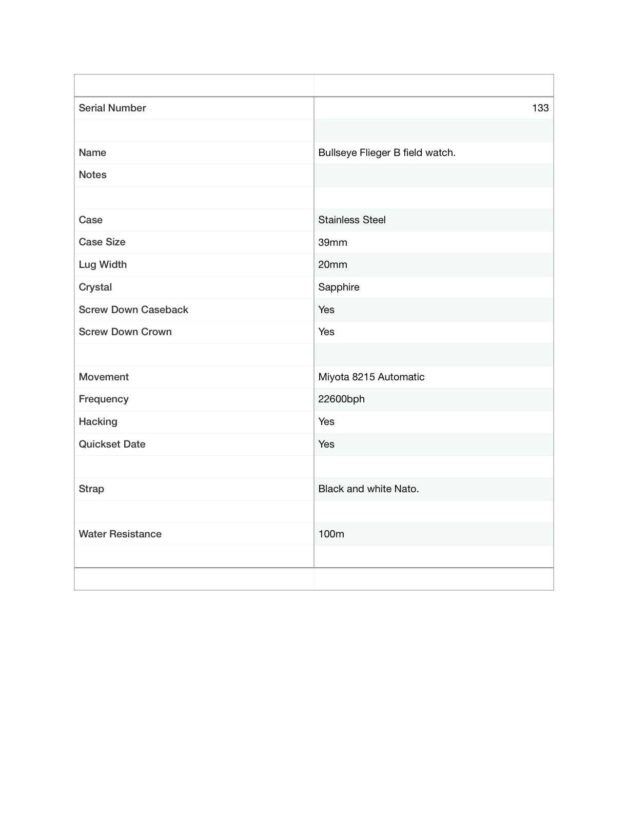 Black Eye. 39mm Stainless steel case. Flieger B style dial. Sapphire crystal. Miyota 8215 automatic.