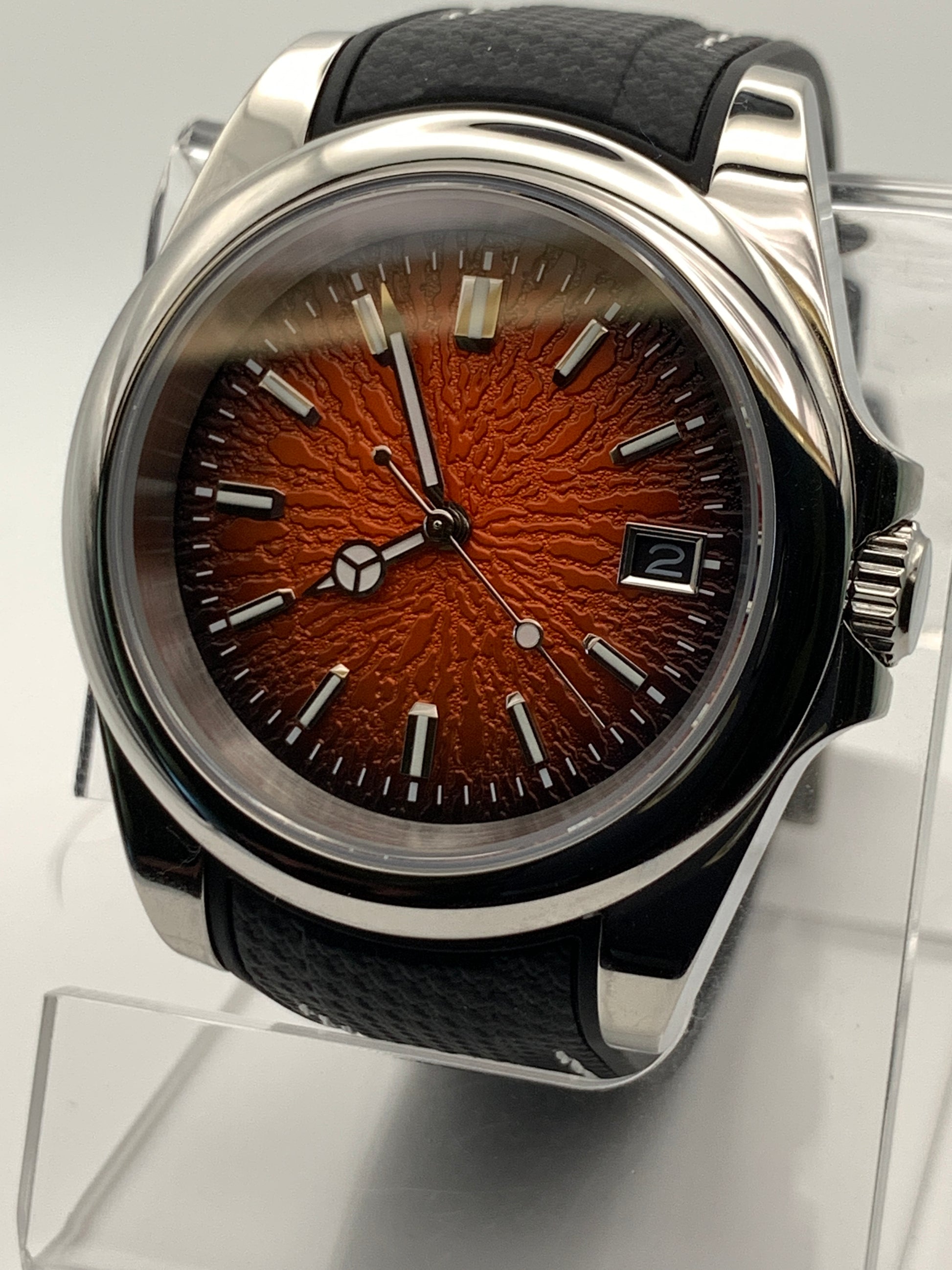 Burnt Orange Sunburst Textured Dial Sport Watch