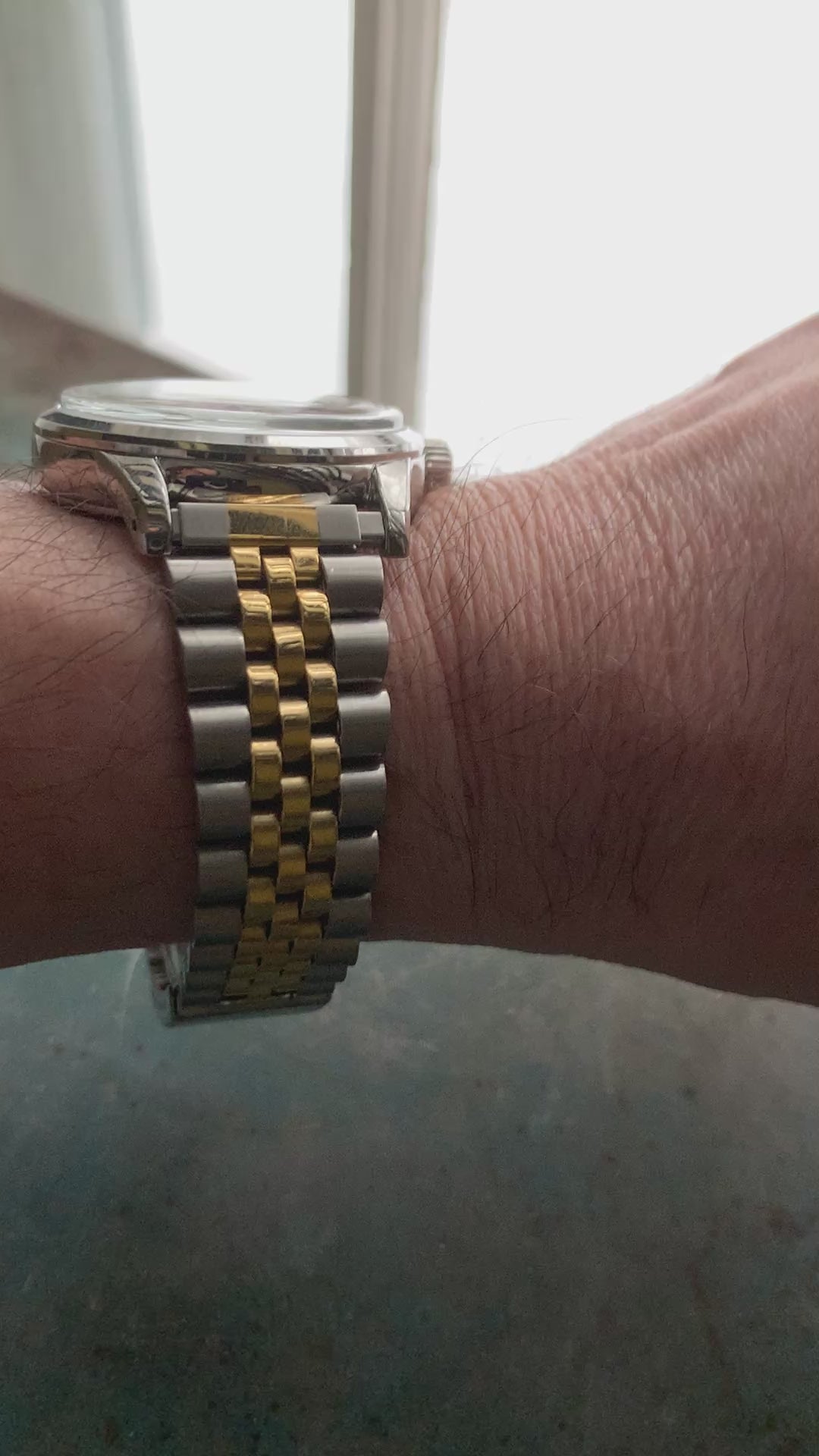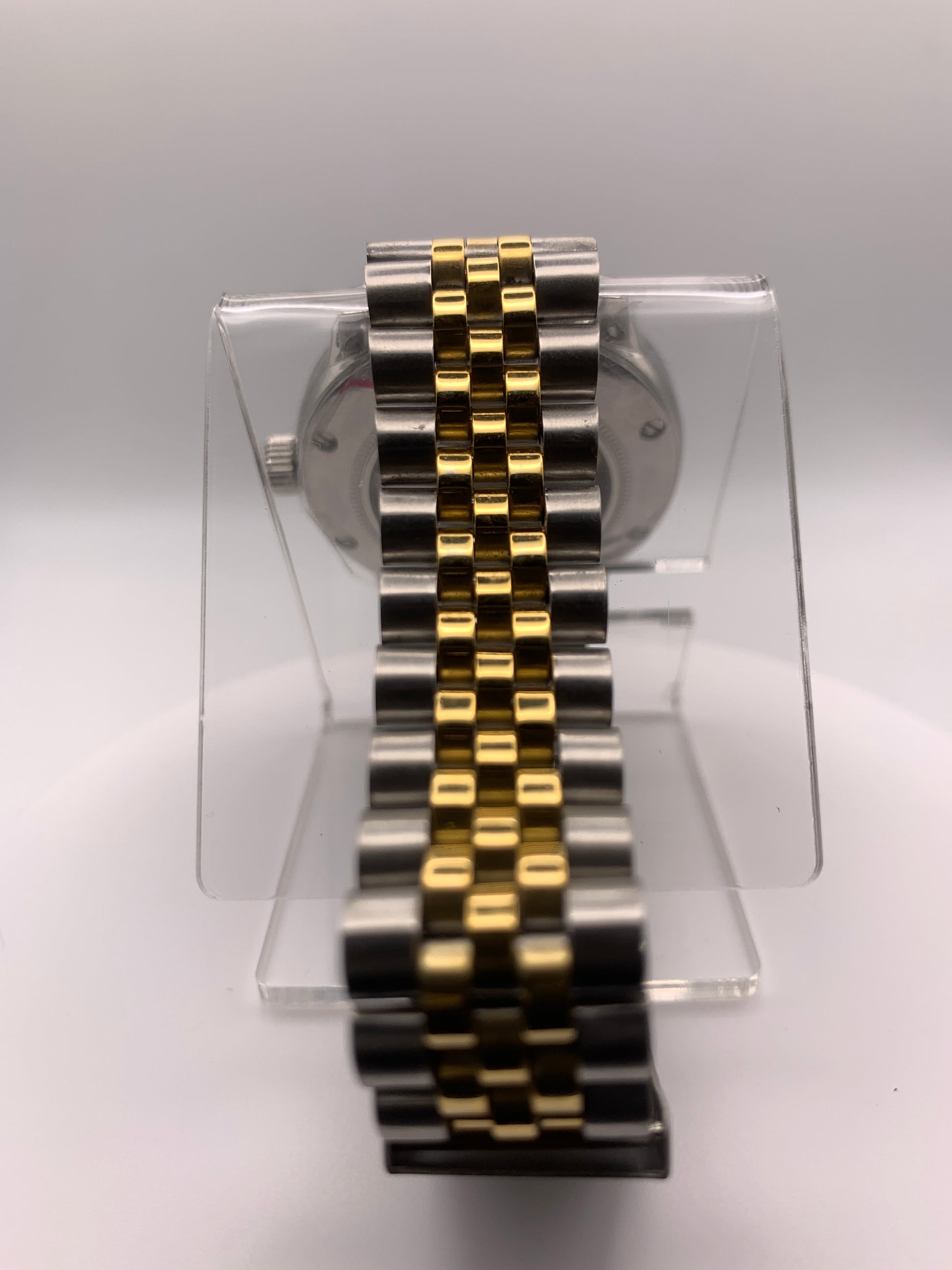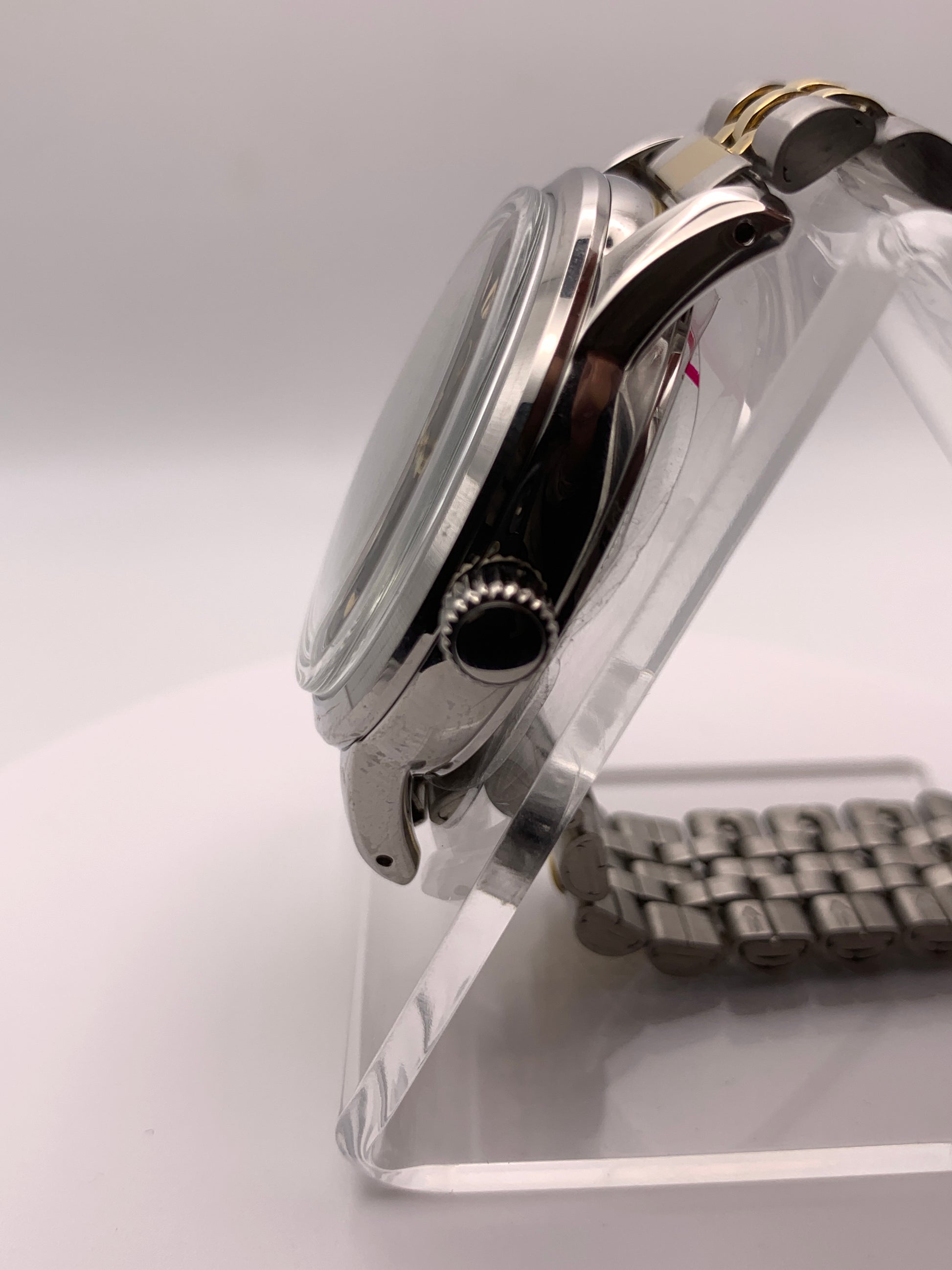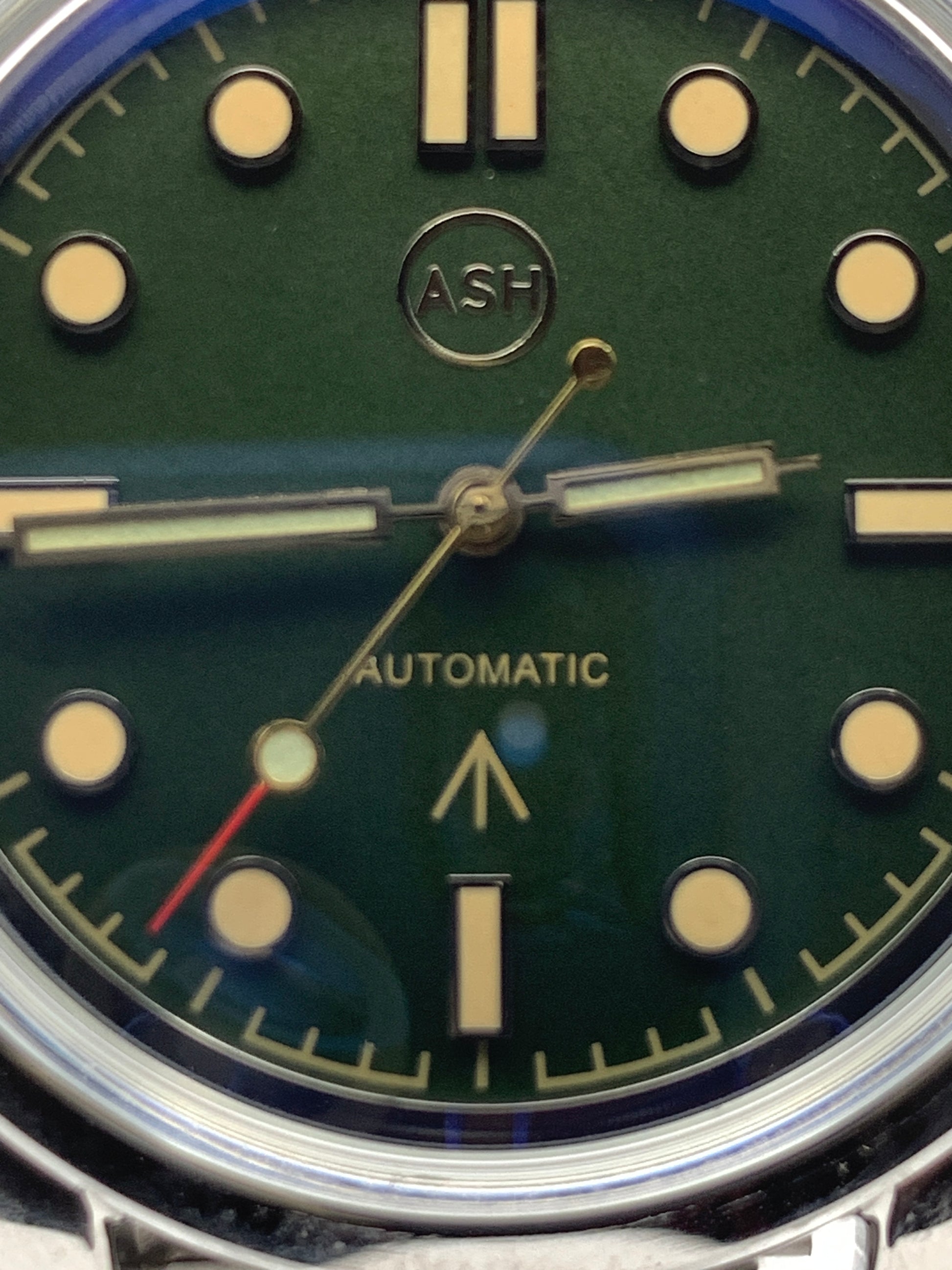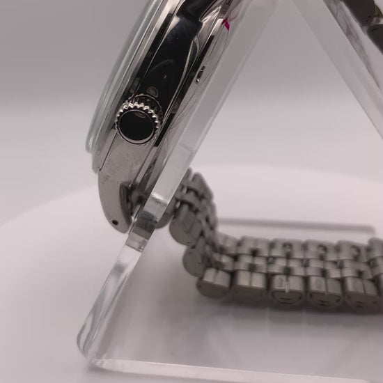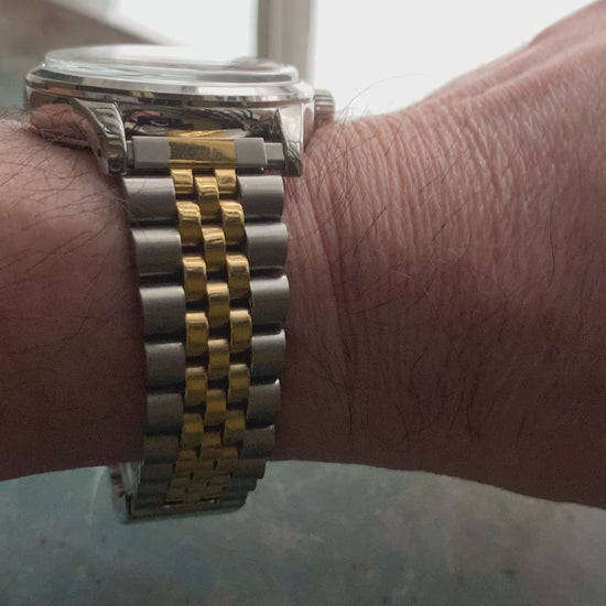 Mister Green Jeans. 39mm stainless steel. Box mineral crystal with blue AR coating. Seiko NH35 automatic. Vintage Speidel bracelet.