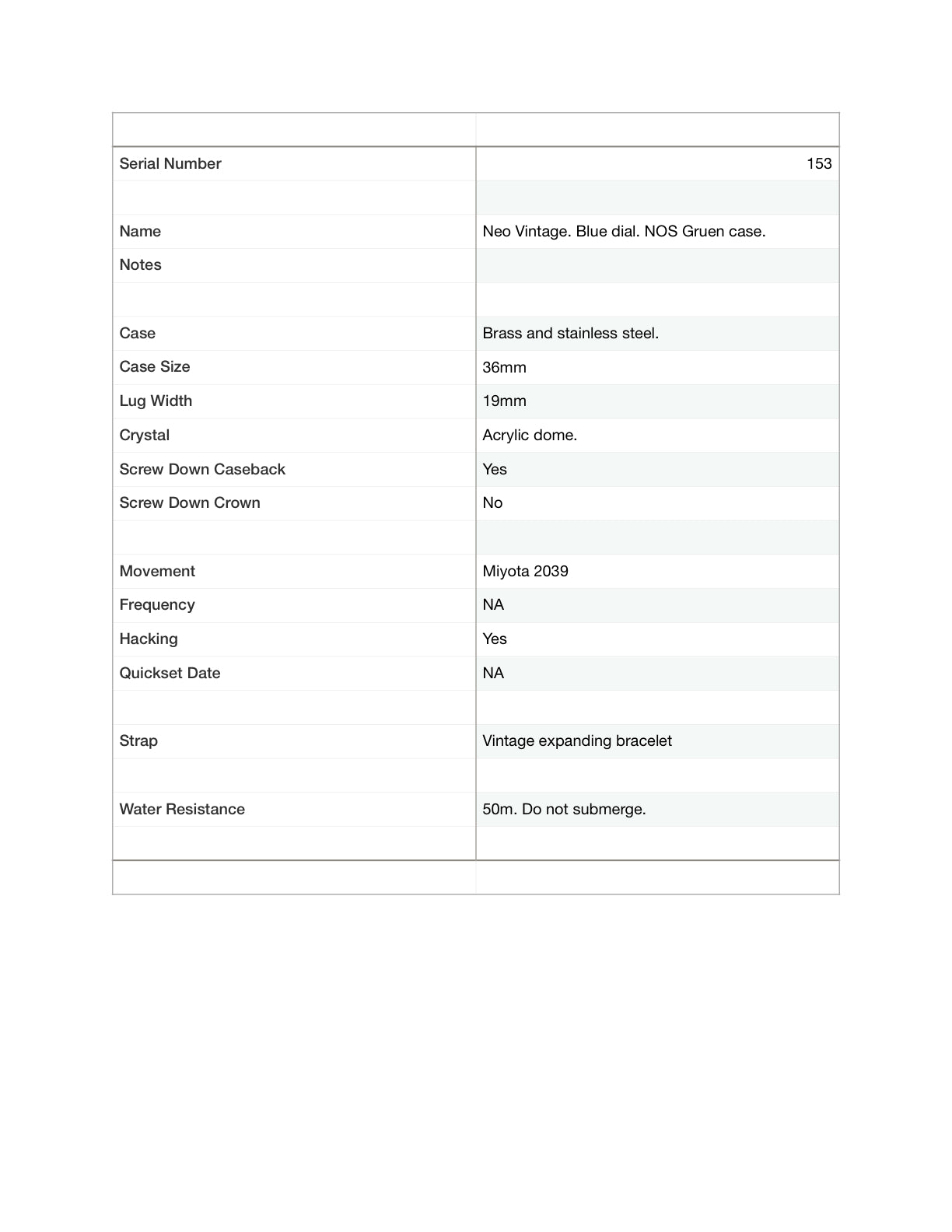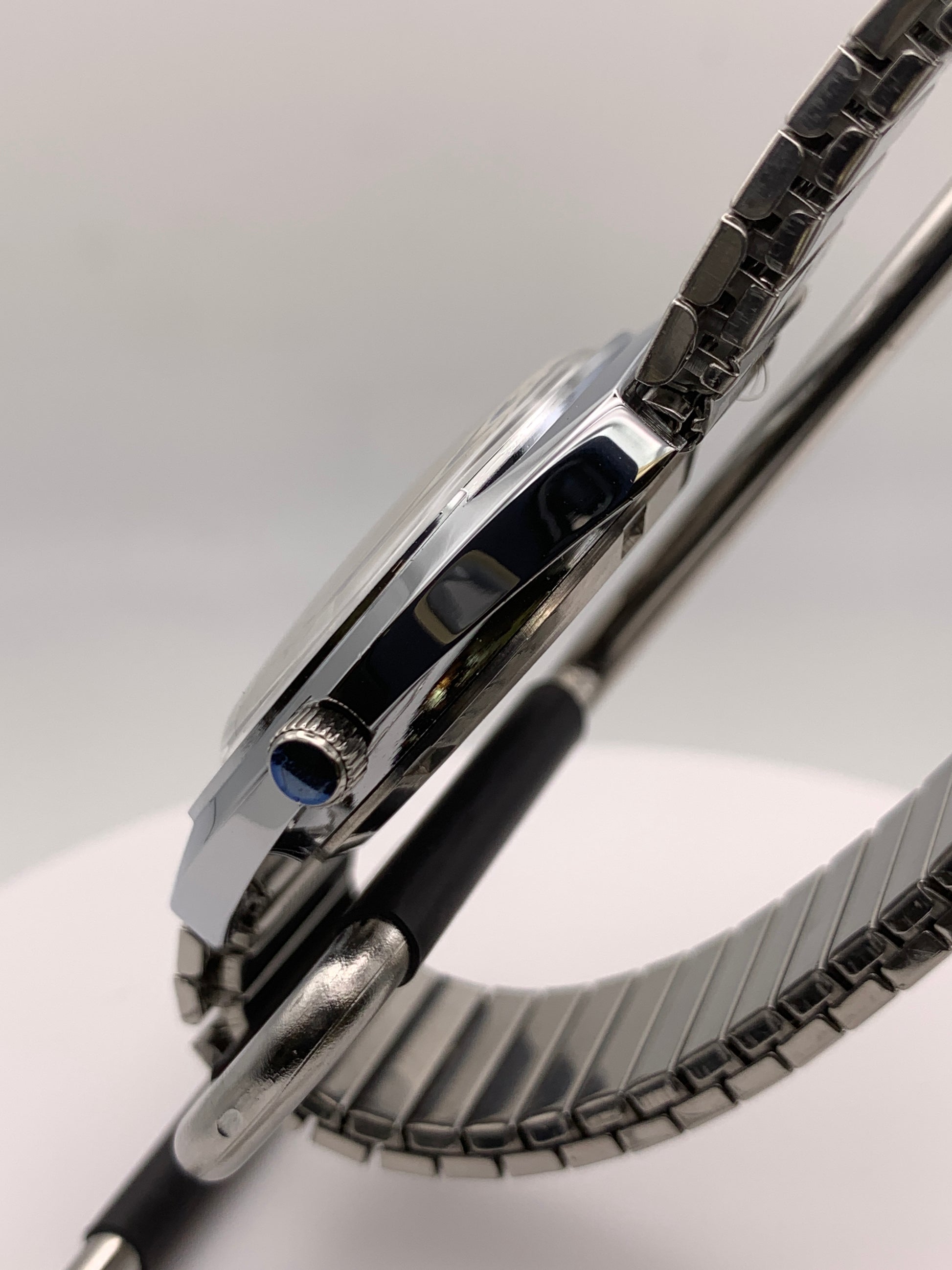 Neo Vintage Collection. Sport watch.NOS Gruen case. Blue dial, vintage expanding bracelet.